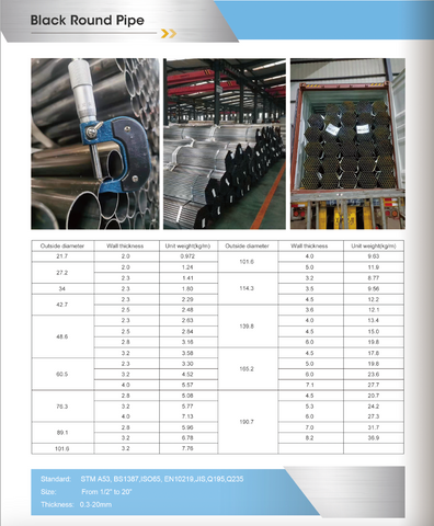 4. **Sizes**: Black round pipes come in various sizes, typically specified by their nominal diameter. They can range from very small diameters for household applications to much larger diameters for industrial use.